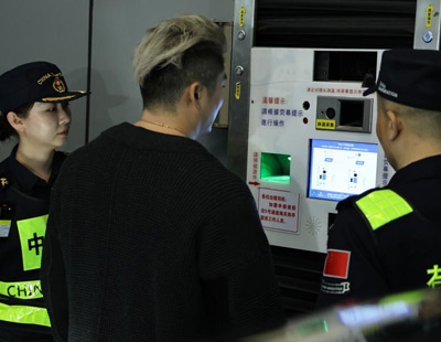 图为研学营队员在中国科学技术馆内的科学家“手模墙”前,与科学家“击掌”。李江宁 摄