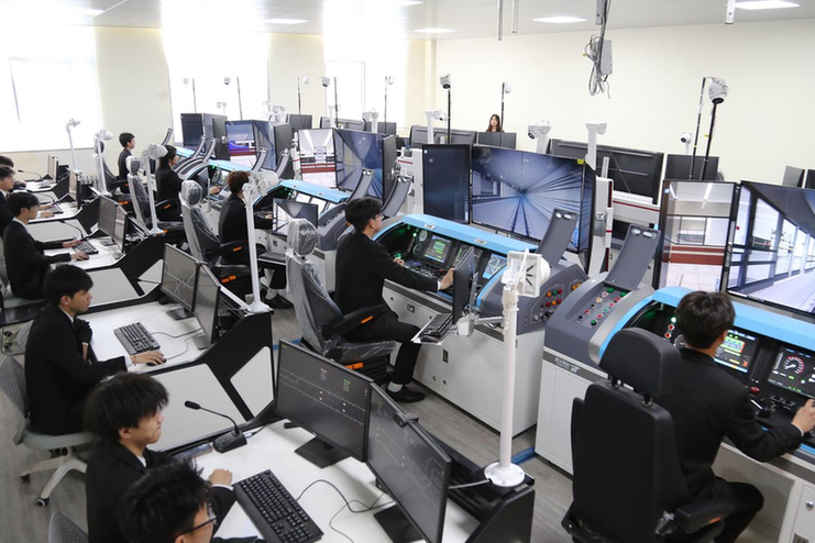 山东职业学院学生在FAO模拟驾驶实训室进行实训