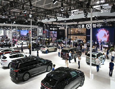 8月15日,世界人形机器人运动会在北京国家速滑馆(冰丝带)开赛。图为灵翌科技H1人形机器人获得1500米冠军。中新社记者 韩海丹 摄