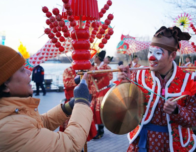 10月28日,青海西宁,生活在青海省养老服务中心的老人与幼儿园小朋友共度重阳节。图为老人阅读小朋友自制的节日贺卡。中新社记者薛蒂 摄