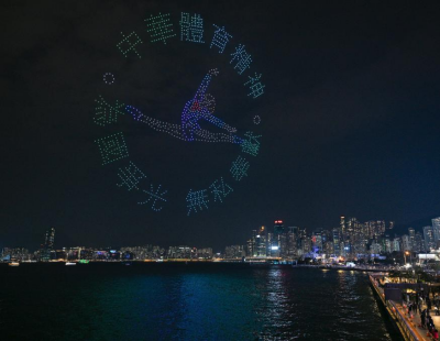 • 香港举行“体育力量 闪耀香江”大型无人机表演