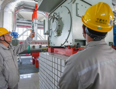 2025年2月25日,云南省昭通市绥江县,新市金沙江特大桥施工现场,工人正加紧施工。