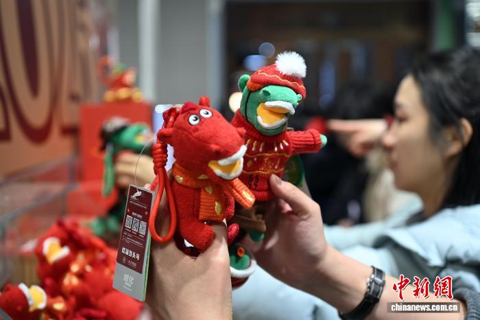 图为游客在甘肃省博物馆文创中心选购“铜奔马”为主题的文创产品。中新社记者 九美旦增 摄