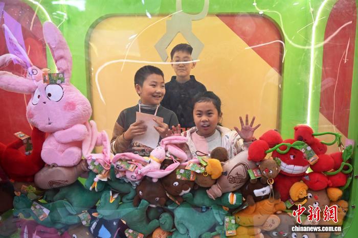 图为甘肃省博物馆内的各种文创毛绒玩具吸引小朋友。中新社记者九美旦增 摄