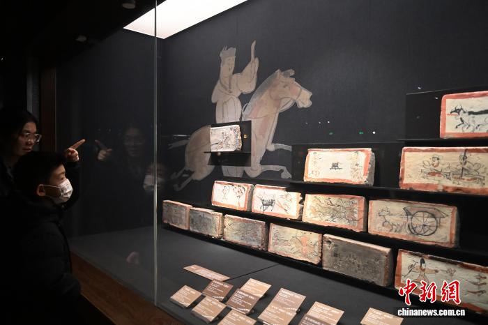 图为游客夜游甘肃省博物馆,参观魏晋画像砖《驿使图》。中新社记者 九美旦增 摄