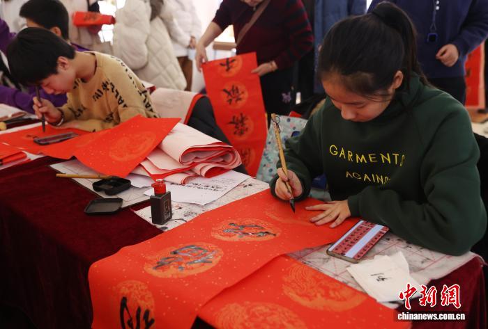 图为小朋友写春联。中新社记者 于晶 摄