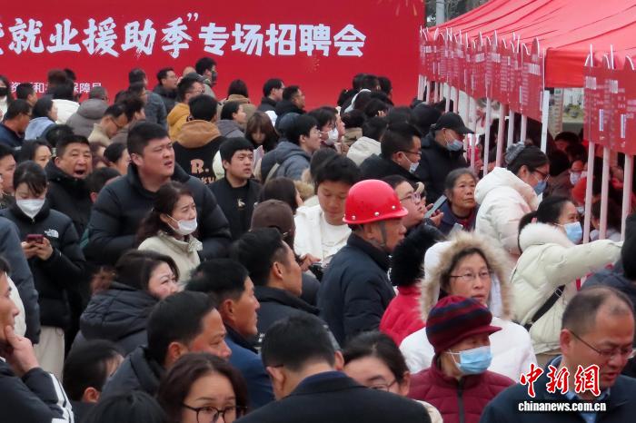 2月25日,江苏南京,应聘者在招聘摊位前咨询。当日,以“春风送岗促就业真情相助暖民心”为主题的新春招聘会在南京市六合区市民广场举行,百余家企业提供4500多个热门岗位,涵盖制造业、生物医药、信息通信、建筑地产、教育培训、金融财会、服务业等行业,旨在为广大求职者和企业搭建高效对接的就业桥梁。中新社记者泱波 摄