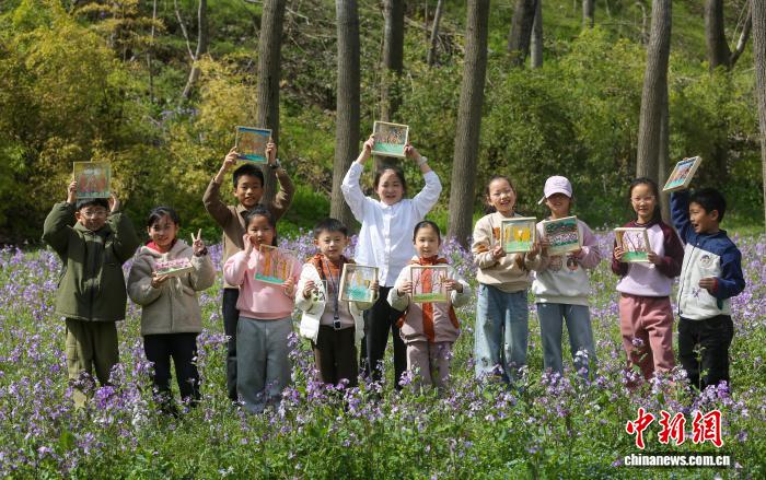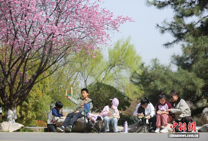 3月22日,在河南省三门峡市黄河公园,小朋友们在老师的指导下,以春日美景为素材,用画笔描绘多彩春光,在自然中感受艺术之美、体验创作乐趣。图为老师指导小朋友们写生创作。孙猛摄