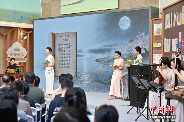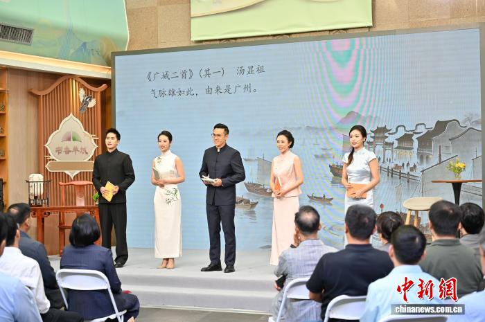 4月1日,2026广州读书月在位于广州市的广州购书中心正式启动。本次活动以“文润羊城阅见未来”为主题,依托实体书店、公共图书馆、特色阅读空间等,在广州市组织开展近千场阅读活动。图为启动活动现场的经典诗词诵读表演。中新社记者陈楚红 摄