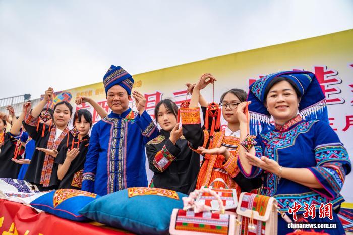 图为学生们身着民族服饰迎接“三月三”的到来。高如金 摄